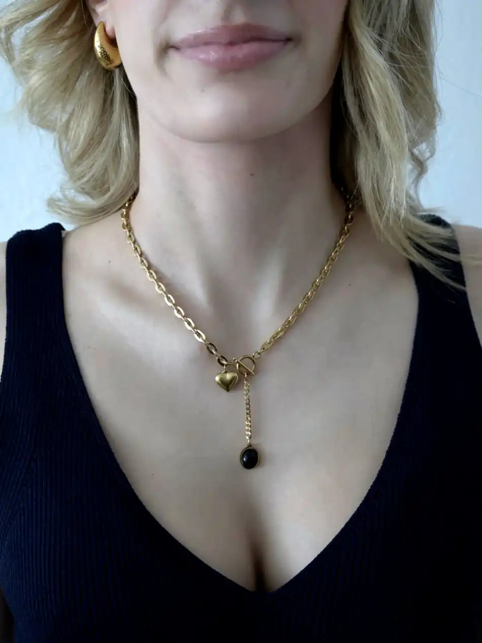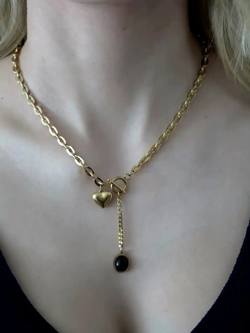 • Anhänger: Herz & schwarzer Stein (Onyx-Look)