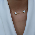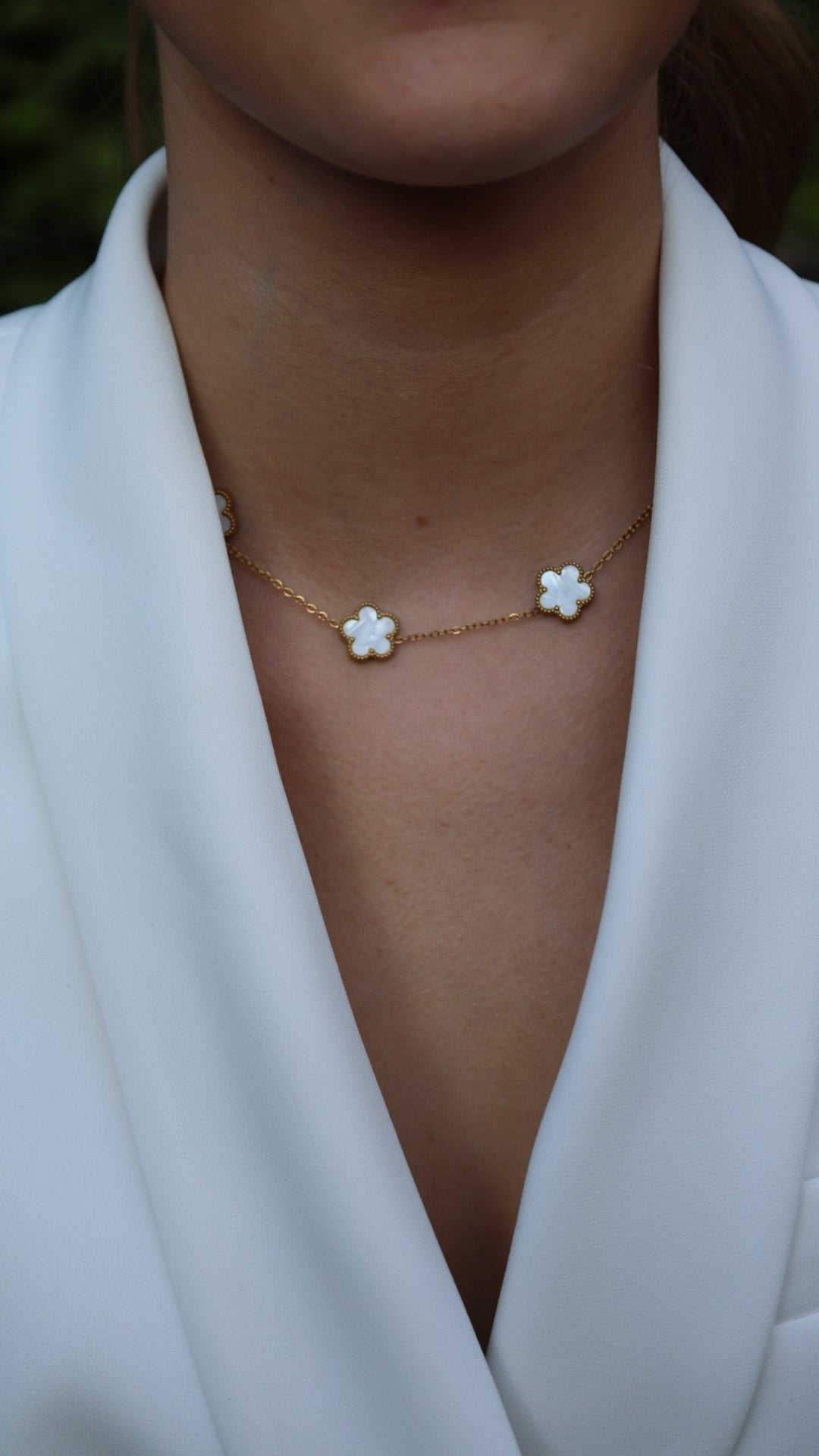 Halskette Kleeblatt weiß, vergoldet