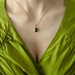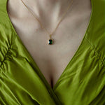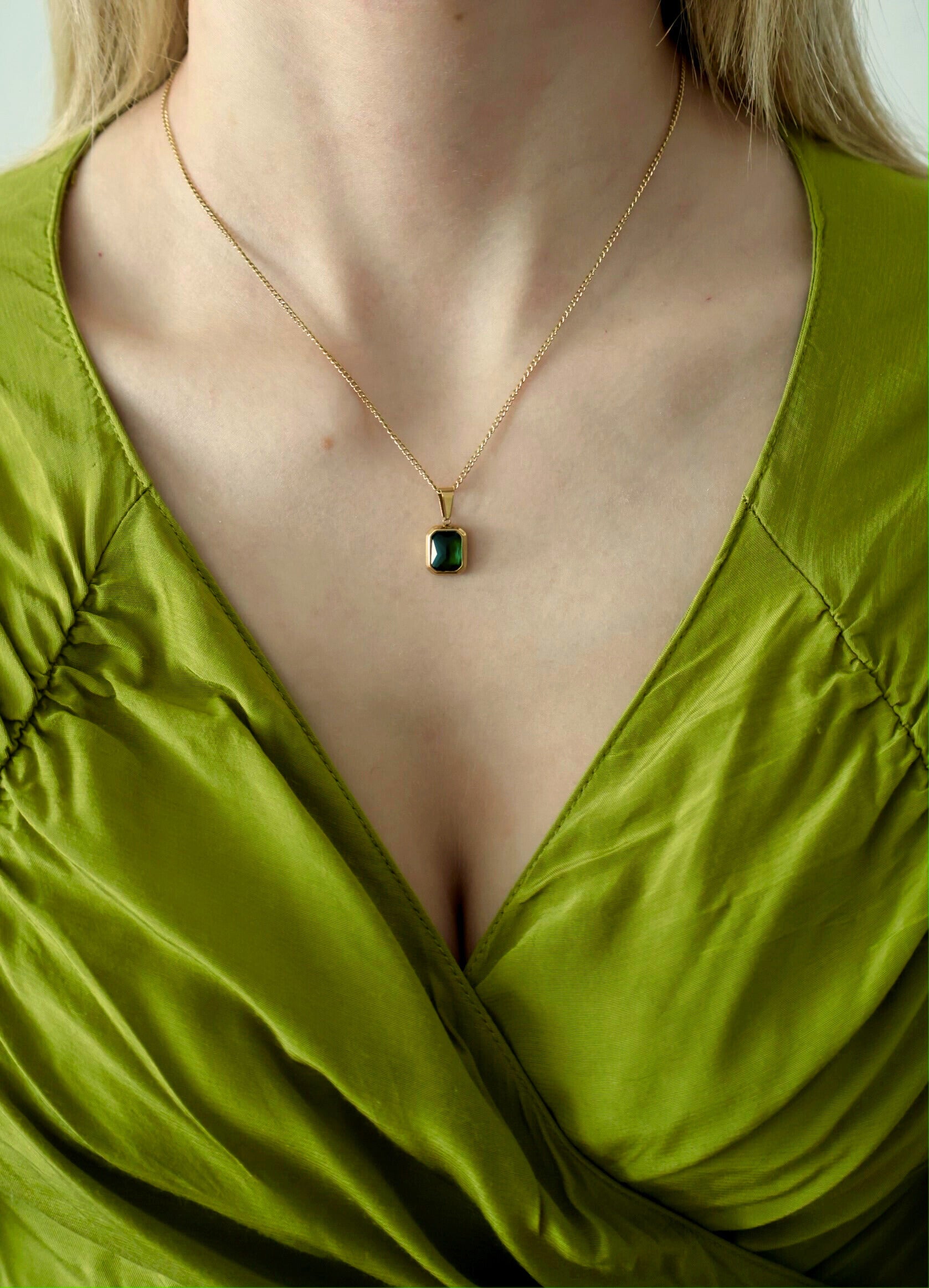 Zarte, 40 cm lange Halskette mit vergoldeter Fassung und tiefgrünem Stein. Ein eleganter Blickfang – minimalistisch, edel und vielseitig kombinierbar.
