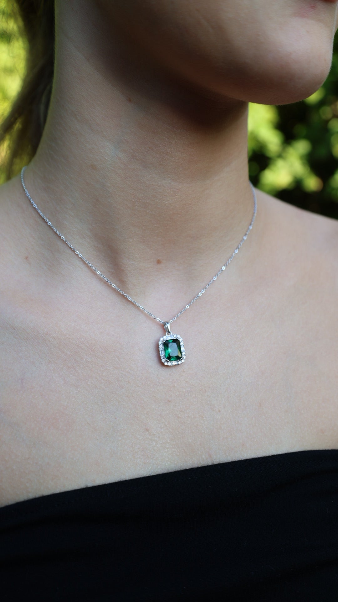 Grüner Anhänger mit Zirkonia auf 925 Silberkette – Länge 42–45 cm